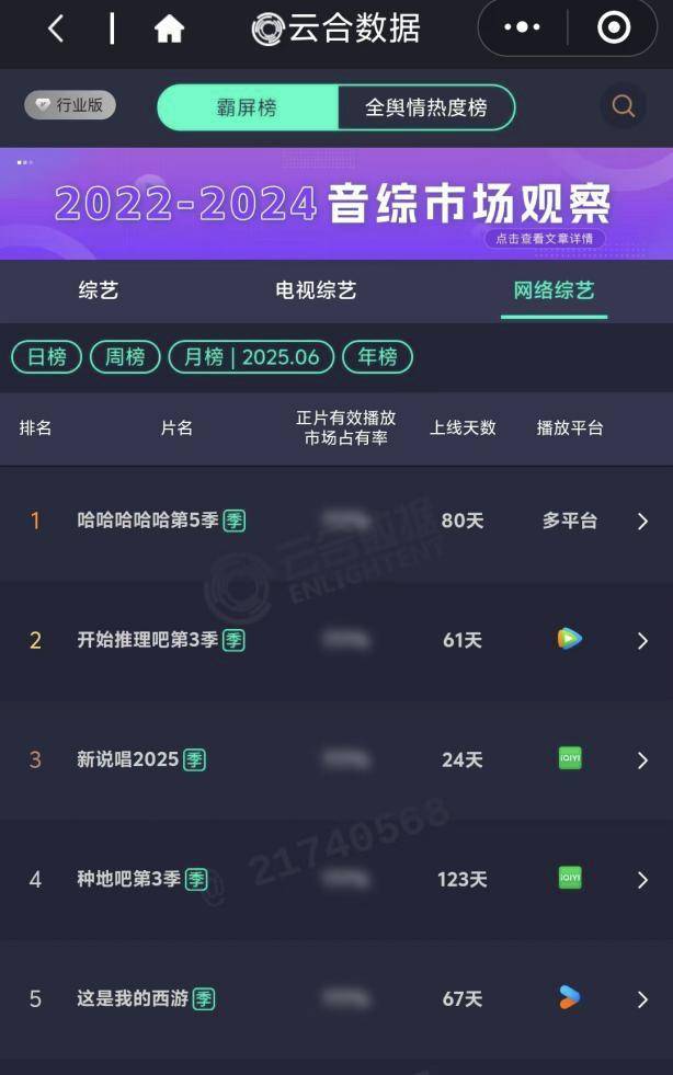 综N代几乎成了视频平台综艺的“定海神针”。特别是爱奇艺,凭借《哈哈哈哈哈5》《新说唱2025》《种地吧3》等综N代节目,牢牢占据了网综霸屏榜的前三名。这个成绩的背后,离不开爱奇艺在综N代节目的精准运营与不断创新。