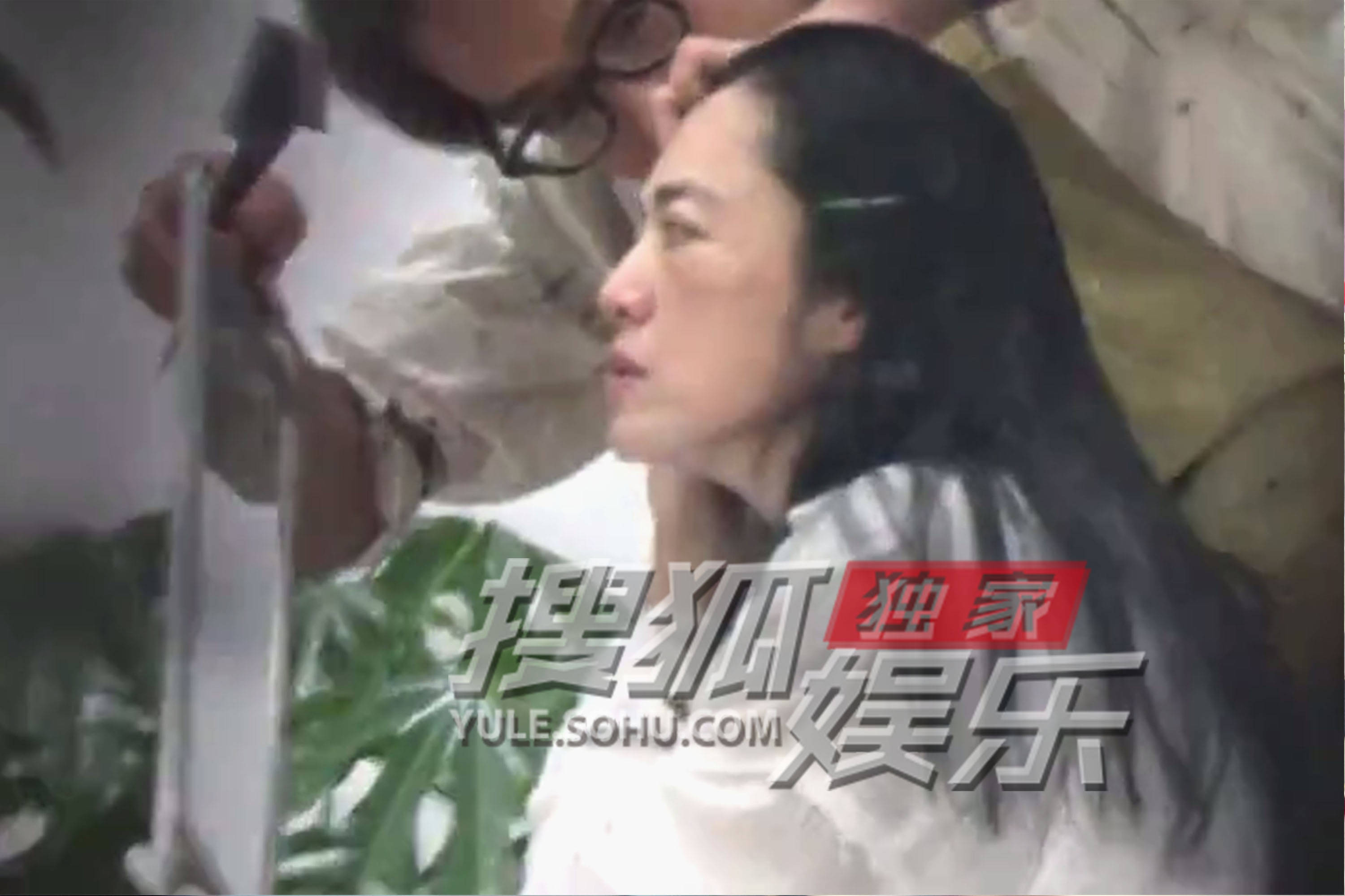 和发型师交流时,姚晨显得有点儿焦虑,不时撩动发根给发型师看,像是在抱怨未被遮住的白发。