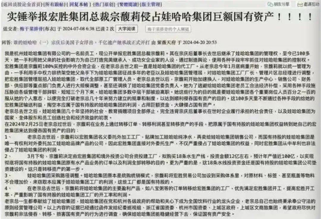 甚至有自称“前员工”的人举报宗馥莉,说她架空娃哈哈原先的管理层大规模调整重点部门负责人,本质是要侵占国有资产。她的亲叔叔和被辞退的前员工们,还合伙开了新公司,推出了熟悉的“AD钙奶”……