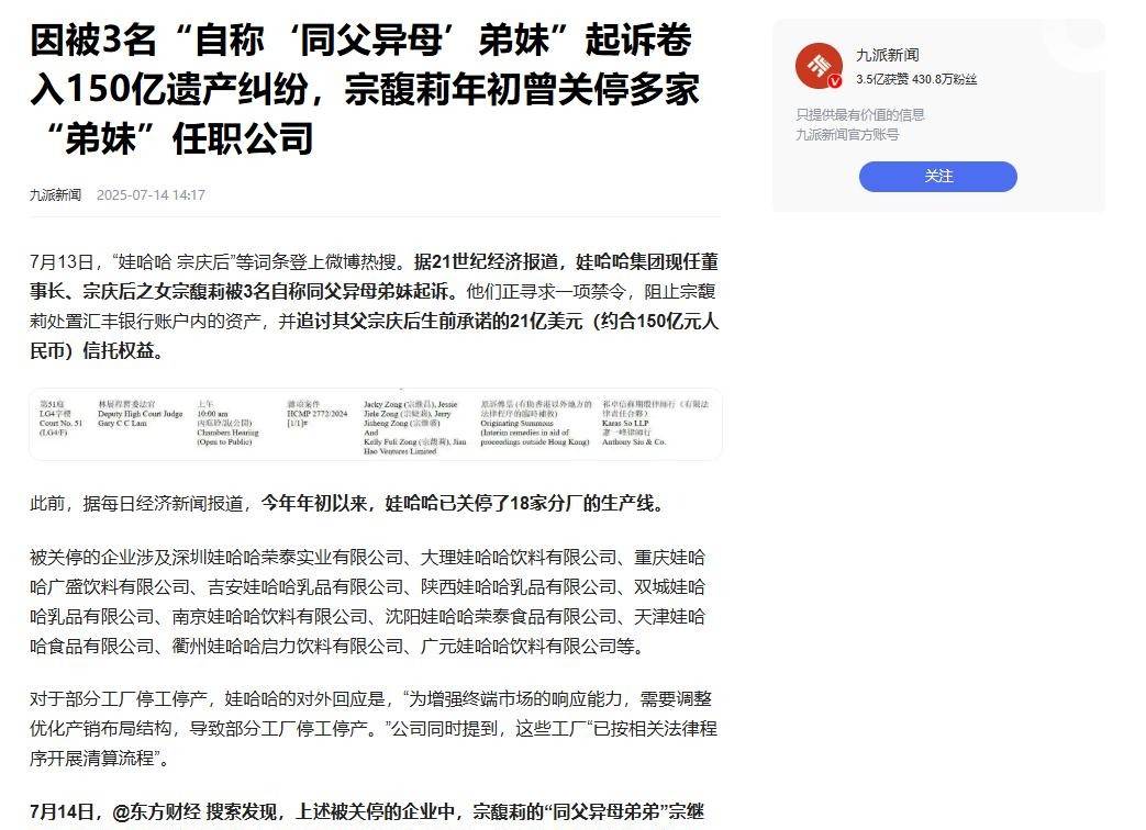 这场豪门风暴远未平息,法律的庭审与商业的绞杀仍在同步进行,宗馥莉步步为营,招招凌厉,展现出的不仅是手腕,更是一种不留后患的决绝而在这场风暴的中心。