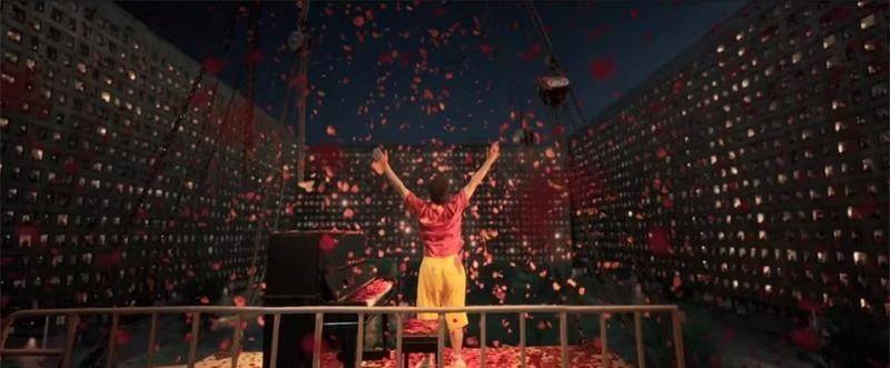 与此同时,这种“大俗”与大雅的钢琴又形成鲜明对比,像有人拿着一盘调好的浓墨重彩,迎面泼了过来,视觉、听觉双重冲击。