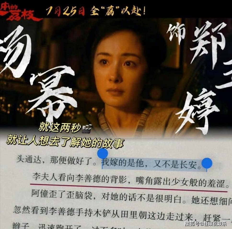 电影中郑玉婷是活生生的角色,与李善德共同经历风雨。郑玉婷和女儿共同支撑着李善德在接到不可能完成的荔枝任务时坚定的走下去。郑玉婷善解人意还活得通透,哪怕她没有漂亮衣服,满脸憔悴,但她的精神世界很丰盈,充满魅力,也是因为她这些美好的品质,让人觉得她和李善德的感情戏非常有张力,两人的感情细腻又感人。
