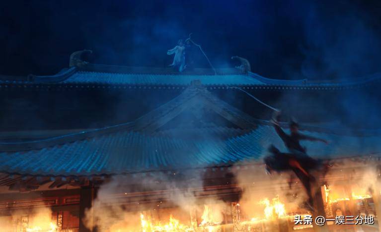 在女主被困在火海里的时候,她通过扔出去的盆,以及暗器穿透瓦片的定位,告诉男主她在哪里。