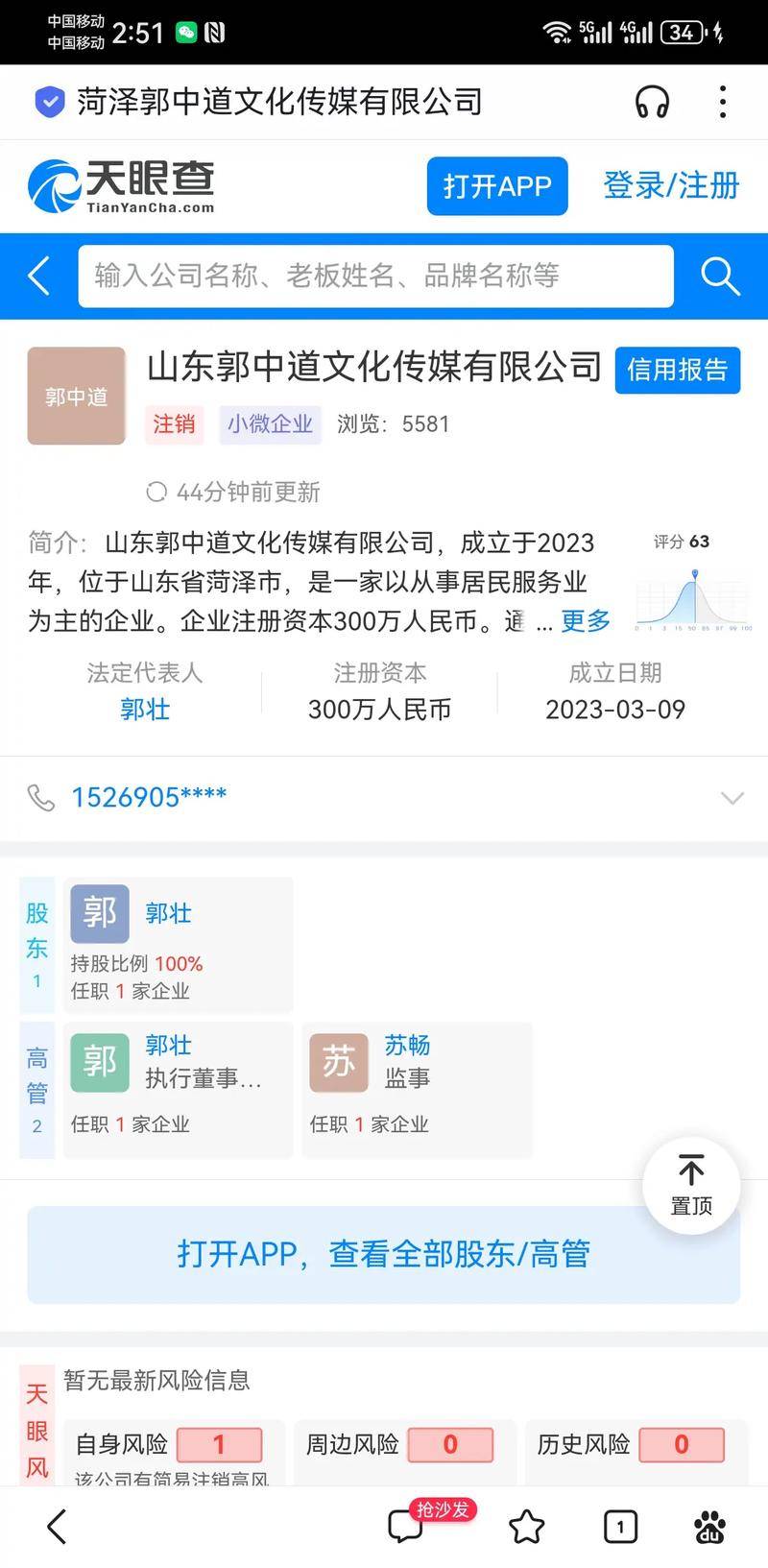 很快,有人就扒出了一份天眼查记录,显示郭有才名下曾有一家注册资本三百万的传媒公司,这一下,舆论炸了锅,一个苦孩子,哪来的三百万注册公司?这跟他那个吃了上顿没下顿的“草根”故事,对不上号啊。