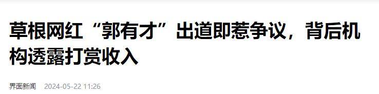 界面新闻:草根网红“郭有才”出道即惹争议,背后机构透露打赏收入