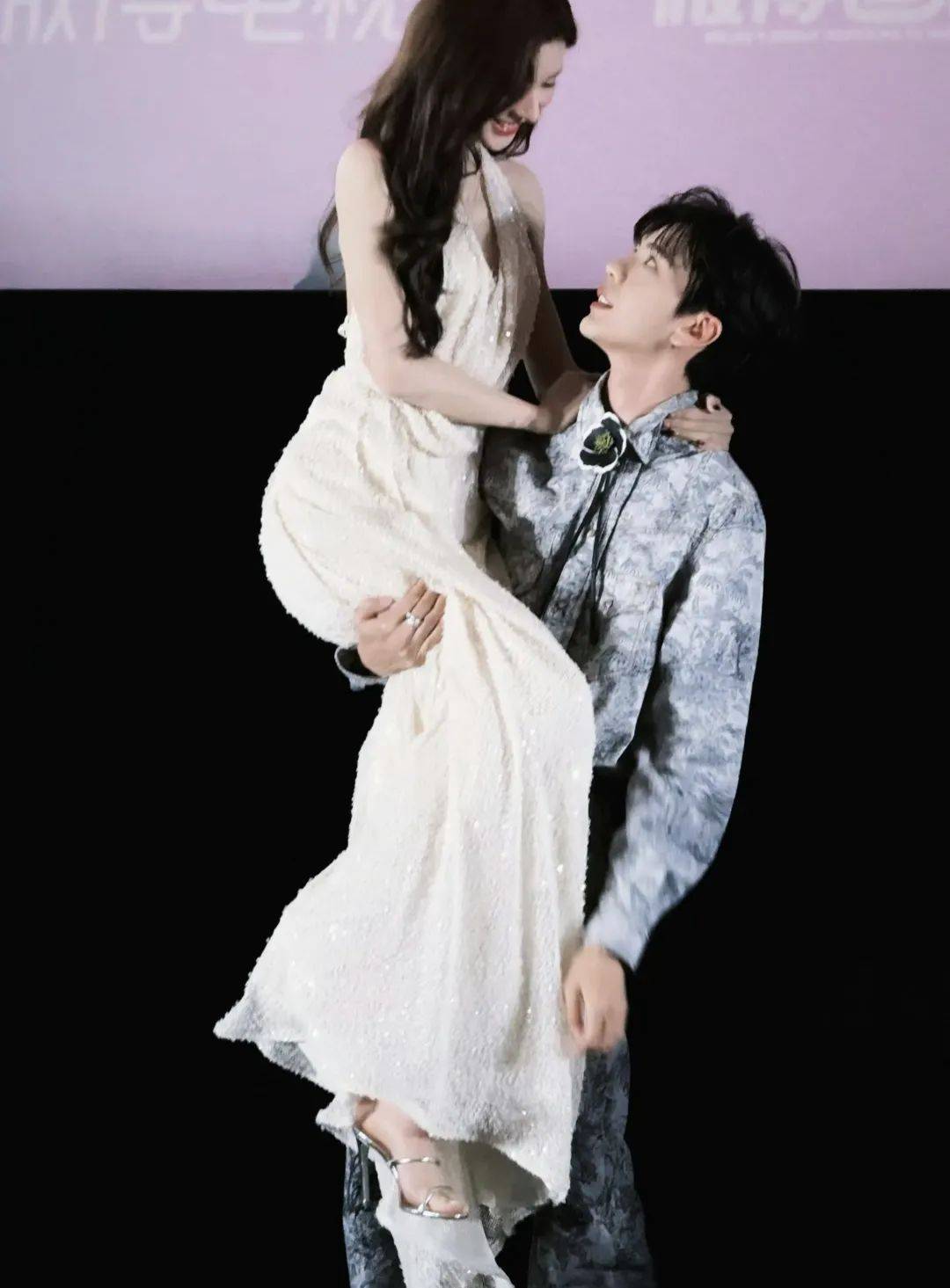 主角见面会,毕雯珺抱起张予曦,两人深情对望,现场冒粉红色泡泡,引粉丝一阵尖叫,太甜了。