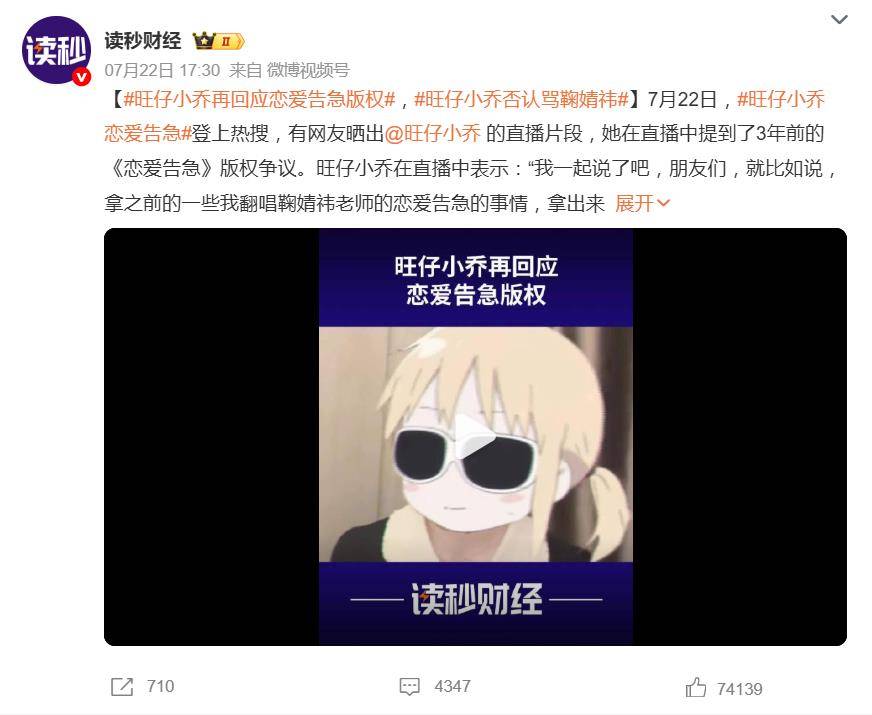 旺仔小乔的委屈,或许代表了一大批网络歌手的困境——他们依赖平台和公司运作,却常常在版权纠纷中成为众矢之的。明明只是按合同唱歌,却要背负“侵权”“蹭热度”的骂名。